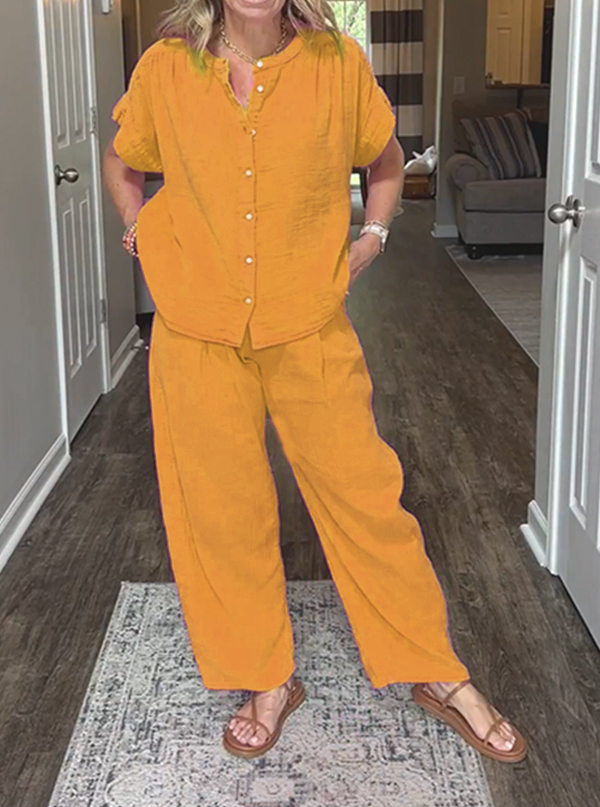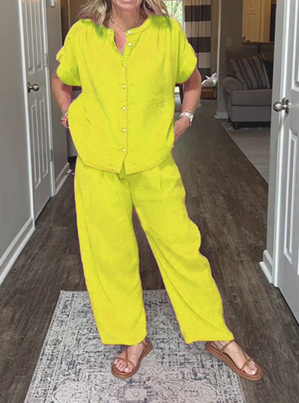 ⏰ LAST DAY SAVE 50% 💥Women's cotton and linen casual solid color 2-piece Set