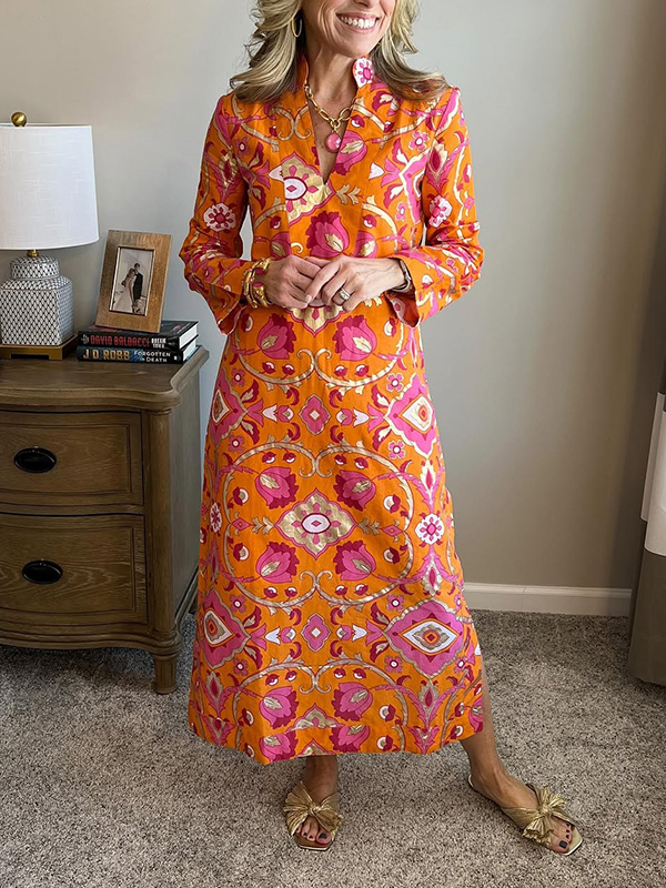 New🔥 Spring Foil Printed V-Neck Dress